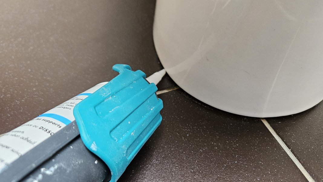 Placez l’embout contre le bas de la cuvette et poussez doucement le pistolet tout en appuyant sur la gâchette, afin de faire sortir le silicone. Faites le tour complet de la cuvette, en essayant de maintenir un débit constant.