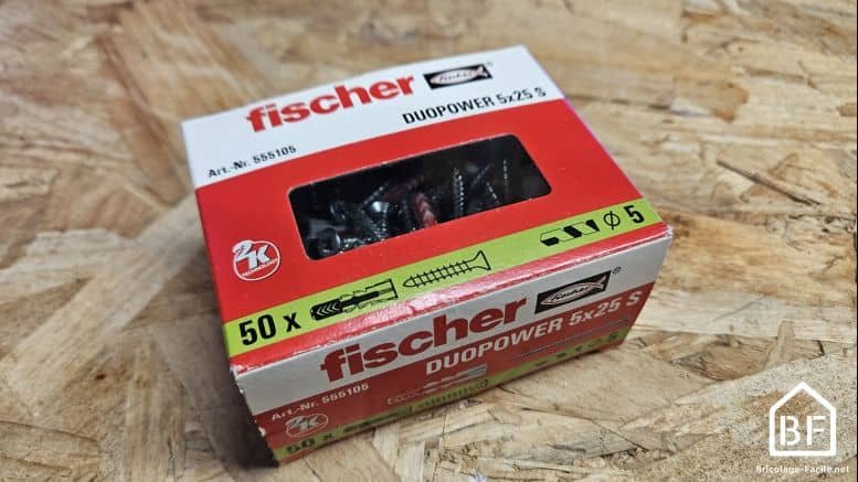 Pour obtenir les meilleurs résultats avec la cheville fischer DuoPower, je vous recommande de percer un trou précis et adapté au diamètre et à la profondeur de la cheville. Ces informations sont d’ailleurs bien présentent sur l’emballage, je vous conseille donc de le conserver.
