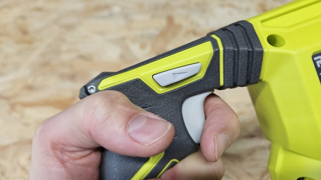 Le perforateur pèse 1,7 kg sans batterie, ce qui n’est pas très lourd, mais qui peut fatiguer à bout de bras lors des lors perçages. La poignée principale est entièrement gainée, avec un petit amorti intégré qui filtre une partie des vibrations. Les commandes tombent bien sous les doigts et l’inverseur de sens est facile à atteindre. L’équilibre reste bon même avec une batterie de 5,0 Ah.