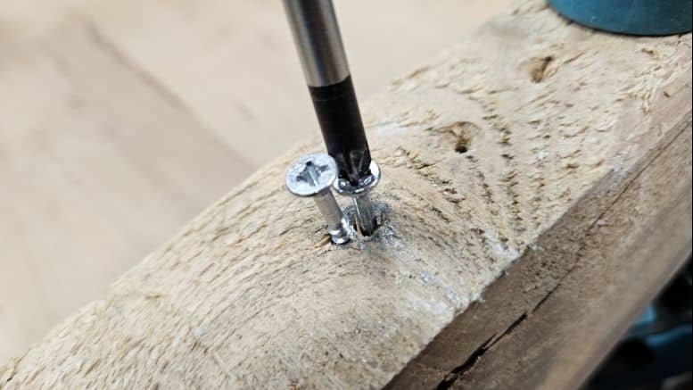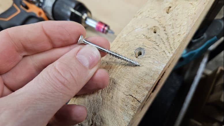 Si la première méthode ne fonctionne pas, prenez une seconde vis et vissez la au plus proche de celle qui tourne dans le vide (sans l’endommager). L’idée est d’écarter légèrement les fibres du bois, ce qui va renforcer le contact autour de la vis bloquée.