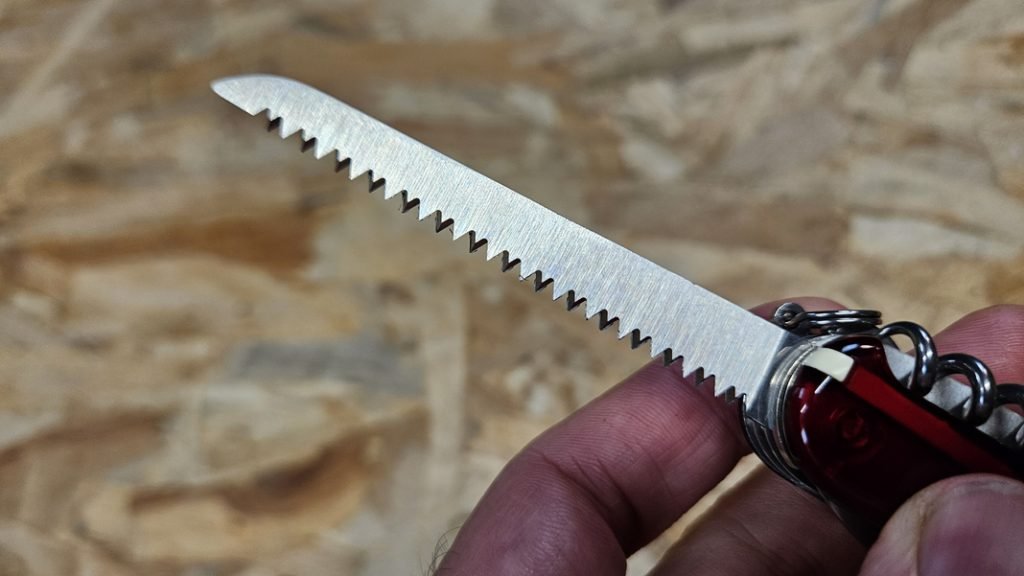 - Une scie à bois d’environ 70 mm, étonnamment performante sur petites branches