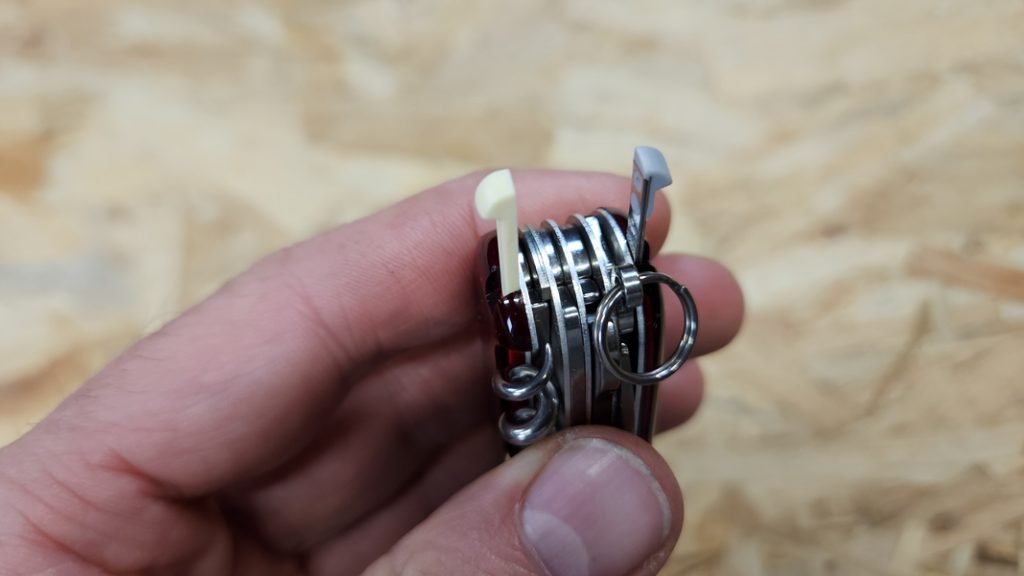 Le gabarit de 91 mm de long pour 21 mm de large, sans oublier le poids de 87g, offrent un bon compromis entre compacité et prise en main. L’ouverture de chaque outil se fait avec une résistance régulière et la fermeture reste franche, sans jeu. Par contre sachez qu’il n’y pas de système de blocage des lames, je vous conseille donc de faire attention lors de leur usage.
