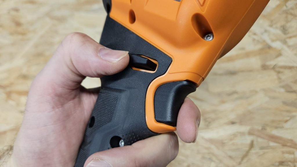 On retrouve aussi un bouton de sécurité qui évite tout démarrage accidentel, ce qui est toujours appréciable pour la sécurité de l’utilisateur.