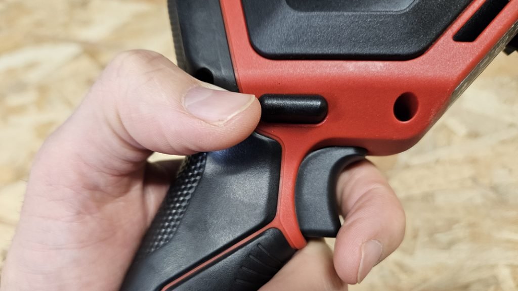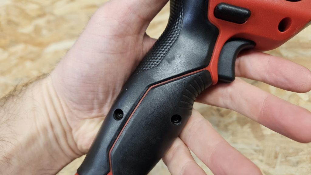 Cette élagueuse est un outil qui se tient sans problème à une main, ce qui permet de réaliser des coupes en hauteur sans difficulté. Son poids de 1,11 kg (sans batterie) est tout à fait correct, ce qui évite aussi de trop se fatiguer lors de longues séances d’élagage. La poignée est de plus recouverte d’un grip confortable et qui offre une bonne accroche, même avec des gants de protection.