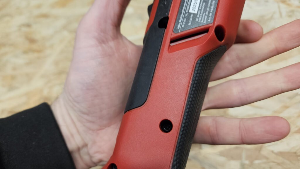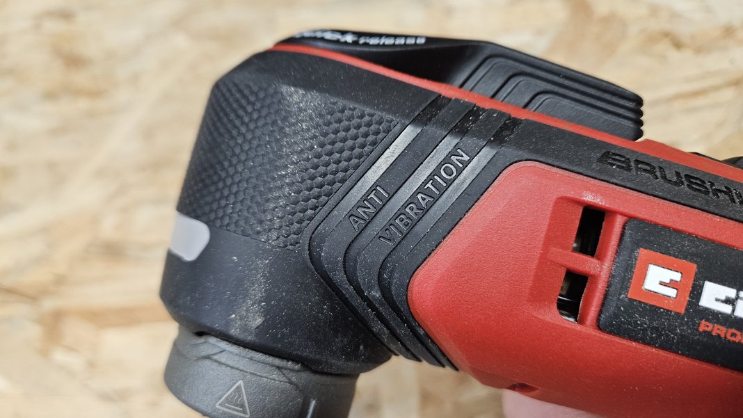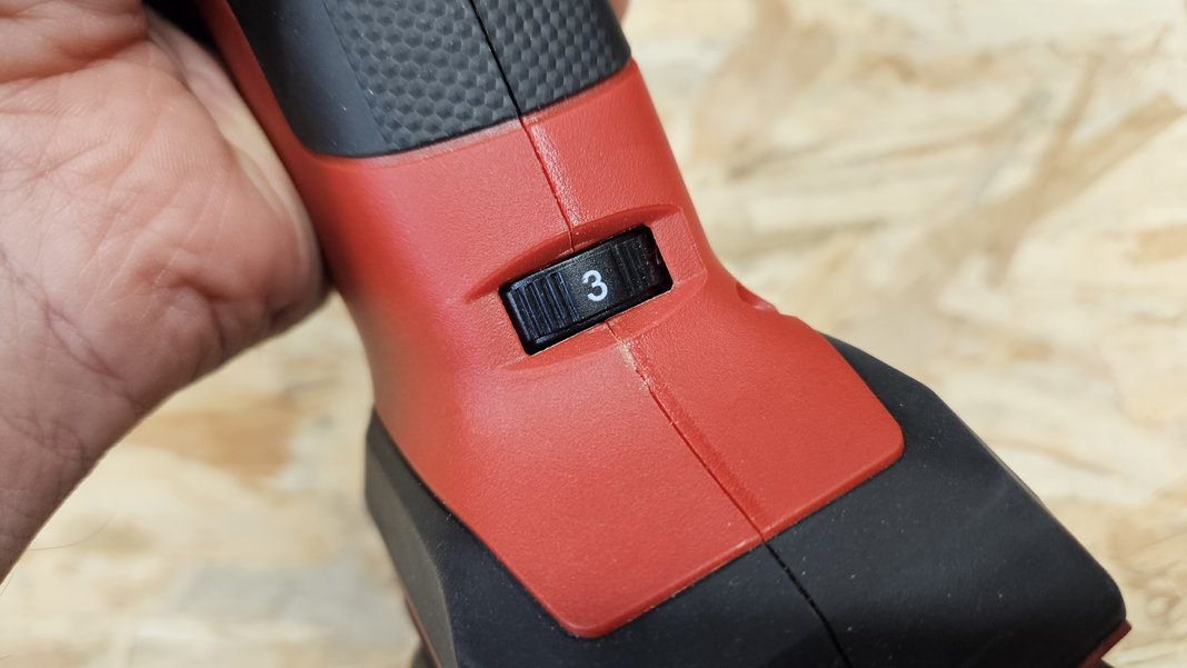 La prise en main est un point essentiel, parce qu’un multifonction transmet naturellement des vibrations et qu’on l’utilise souvent dans des positions pas très confortables. Ici, la machine affiche environ 1,1 kg sans batterie, et elle reste facile à manier, surtout avec une petite batterie. Le grip couvre correctement les zones de contact, et la forme générale est plutôt compacte. C’est un détail, mais quand on a des “petites mains” ou qu’on bricole dans des espaces exigus, c’est appréciable.