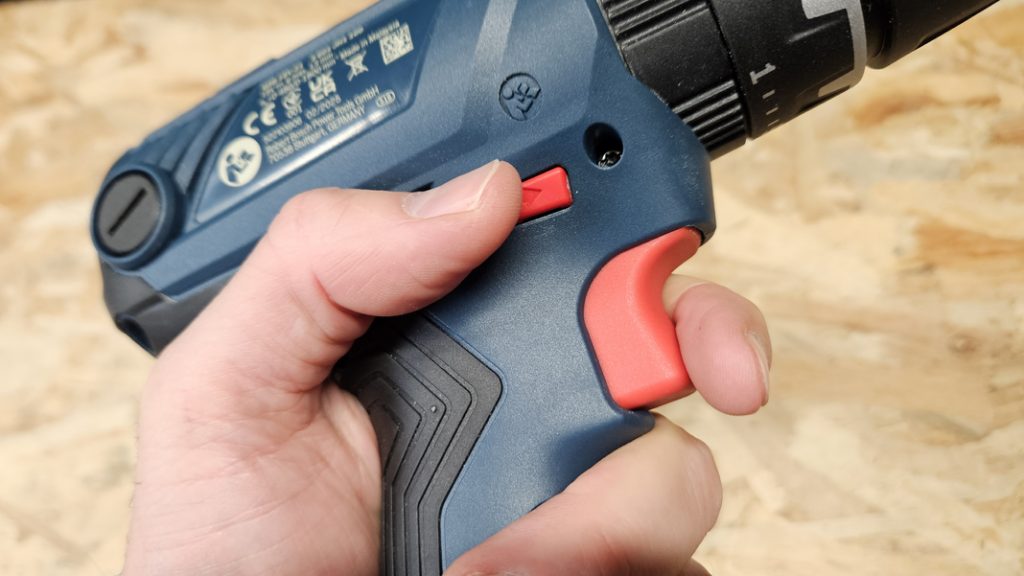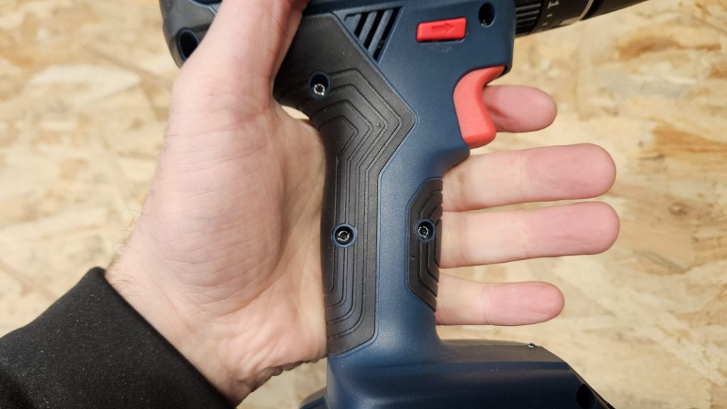 Avec 1,32 kg sans batterie, ce n’est pas la perceuse la plus légère de sa catégorie, mais le gabarit reste bien maîtrisé. Le grip recouvre les zones de contact, l’inverseur de sens et la gâchette tombent naturellement sous les doigts, et la réponse du moteur suit parfaitement la pression exercée. À bout de bras, on finit par sentir le poids sur les longues séances, surtout en percussion, mais l’équilibre général et la compacité limitent la fatigue. Le frein moteur rapide aide à percer précisément et à garder des trous propres en sortie.