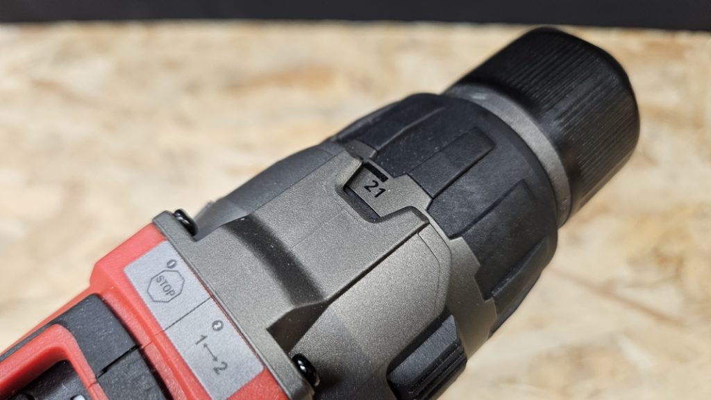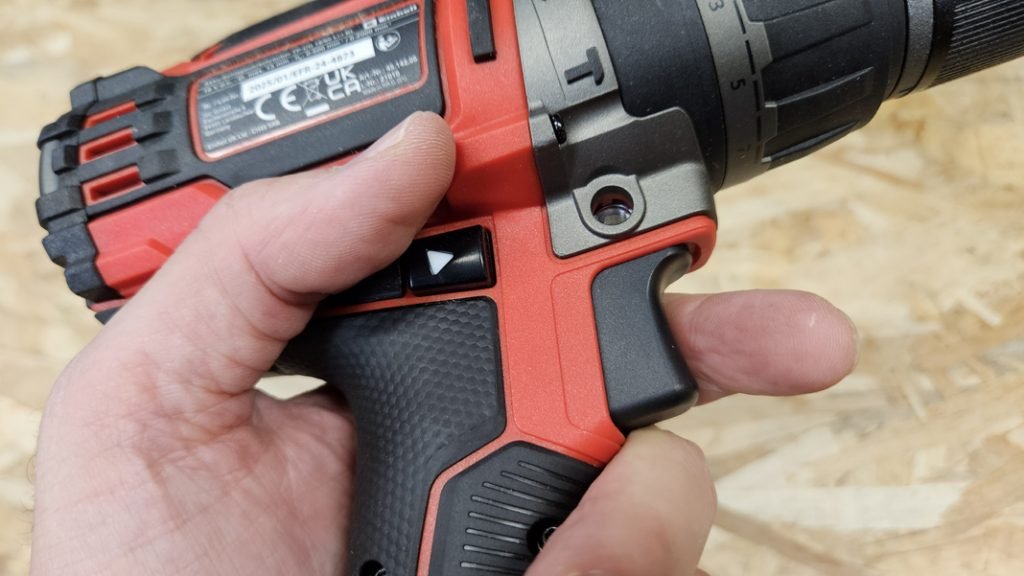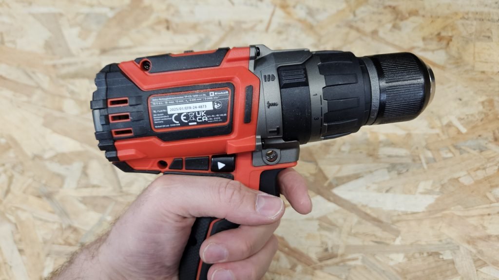 Avec seulement 1,24 kg (hors batterie), cette perceuse se montre légère et agréable à manier, même sur des sessions prolongées. La poignée est recouverte d’un grip confortable et les commandes tombent naturellement sous les doigts. La gâchette est souple et réactive, ce qui permet un contrôle précis du vissage et du perçage.