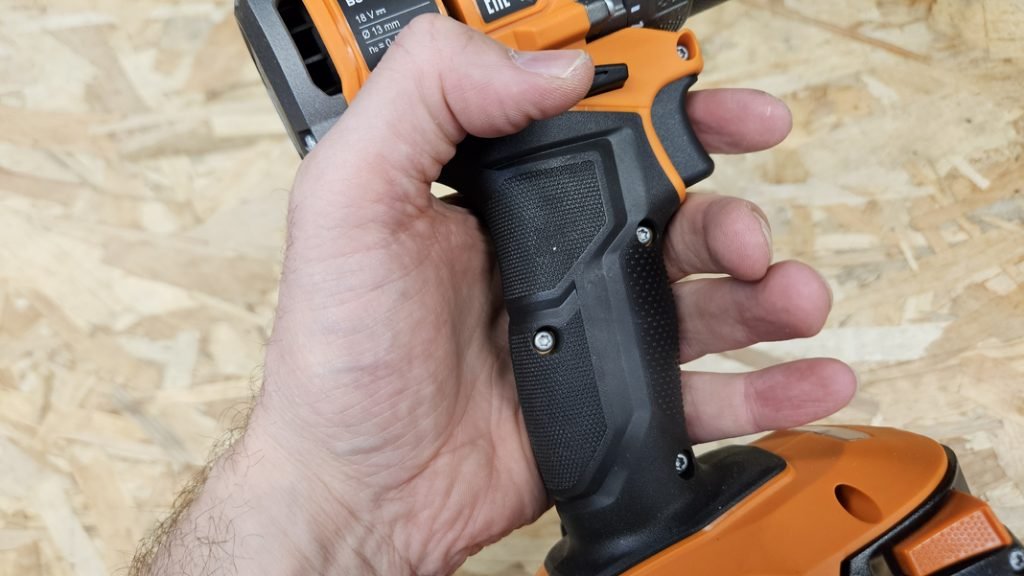 La poignée recouverte d’un grip efficace assure un maintien sûr, tandis que la gâchette de commande et l’inverseur de sens sont idéalement placés pour être actionnés sans effort. Cette ergonomie bien pensée, combinée à un poids réduit, permet de travailler plus longtemps sans ressentir de fatigue, y compris à bout de bras ou en hauteur.