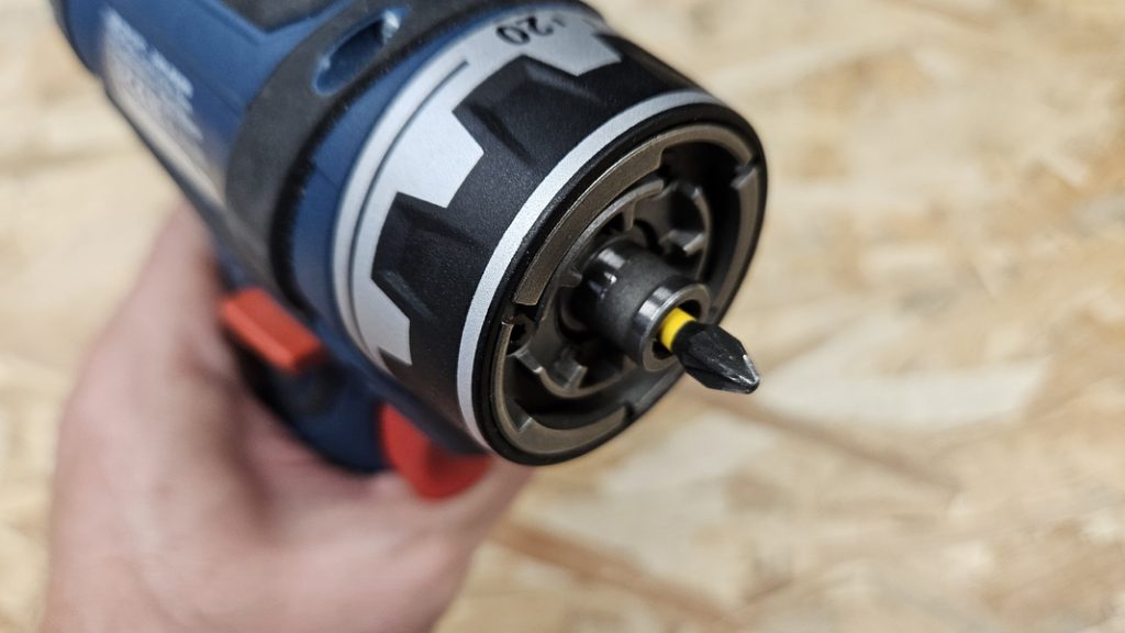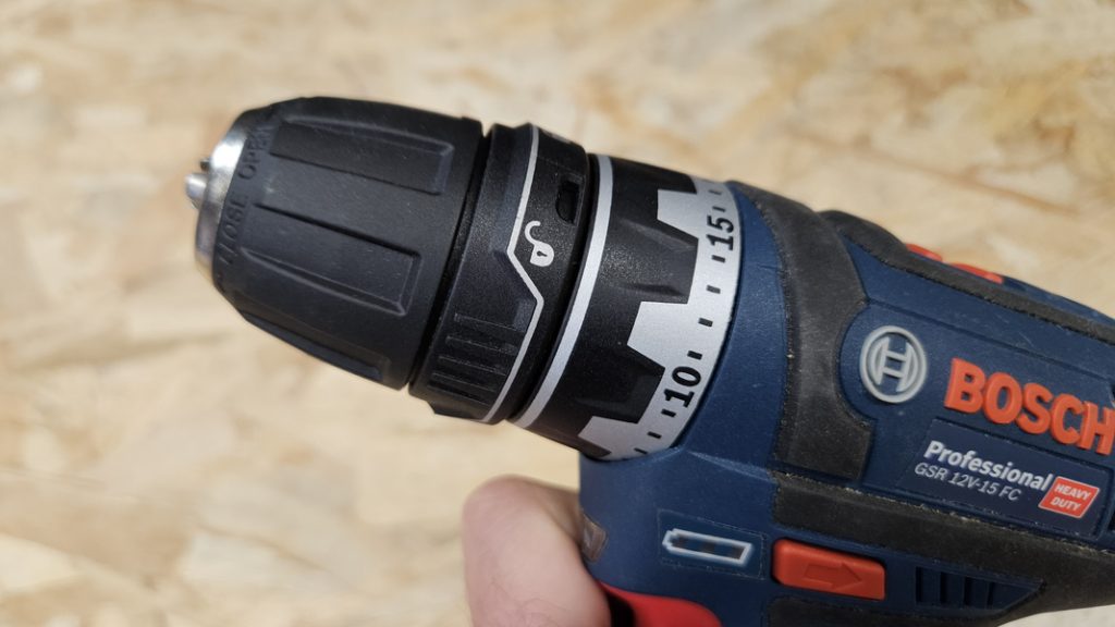 Une bague de couple, là aussi un grand classique, permet d’ajuster le couple de serrage grâce à 20 positions. Cela permet de s’adapter à la dureté du matériau et à la taille des vis, évitant ainsi d’endommager les supports. La position « perçage » désactive le limiteur de couple pour profiter de la pleine puissance du moteur.