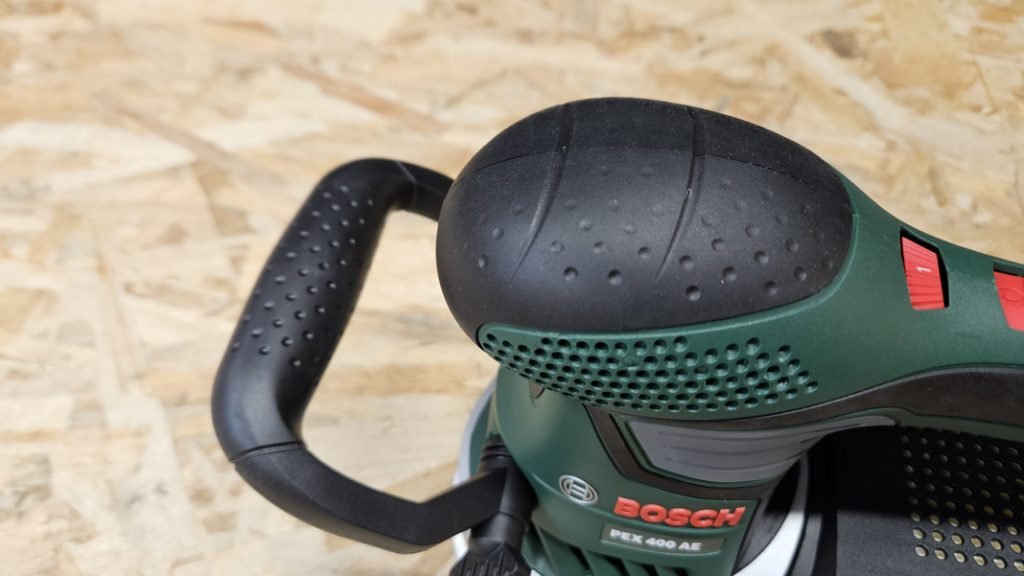 Bosch a multiplié les solutions pour ménager l’utilisateur en proposant plusieurs zone de maintien de la ponceuse :