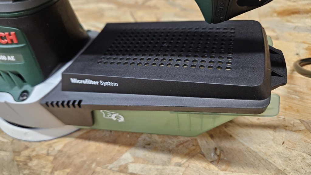 Le filtre collecteur se démonte en tirant sur deux languettes et il retient une quantité sensible de poussières et se vide sans difficulté. On peut aussi raccorder un aspirateur pour optimiser la captation, mais un adaptateur est généralement nécessaire.
