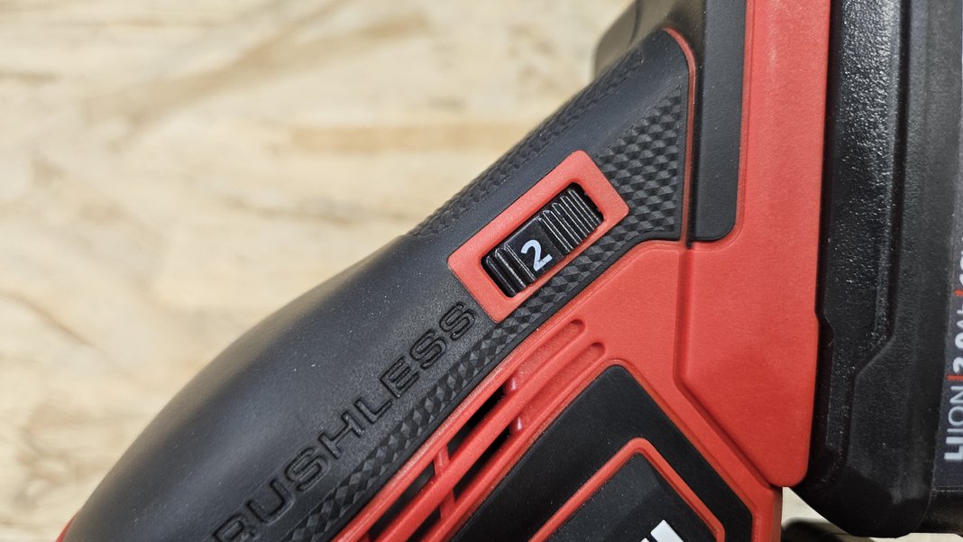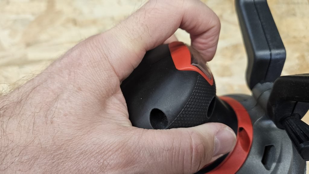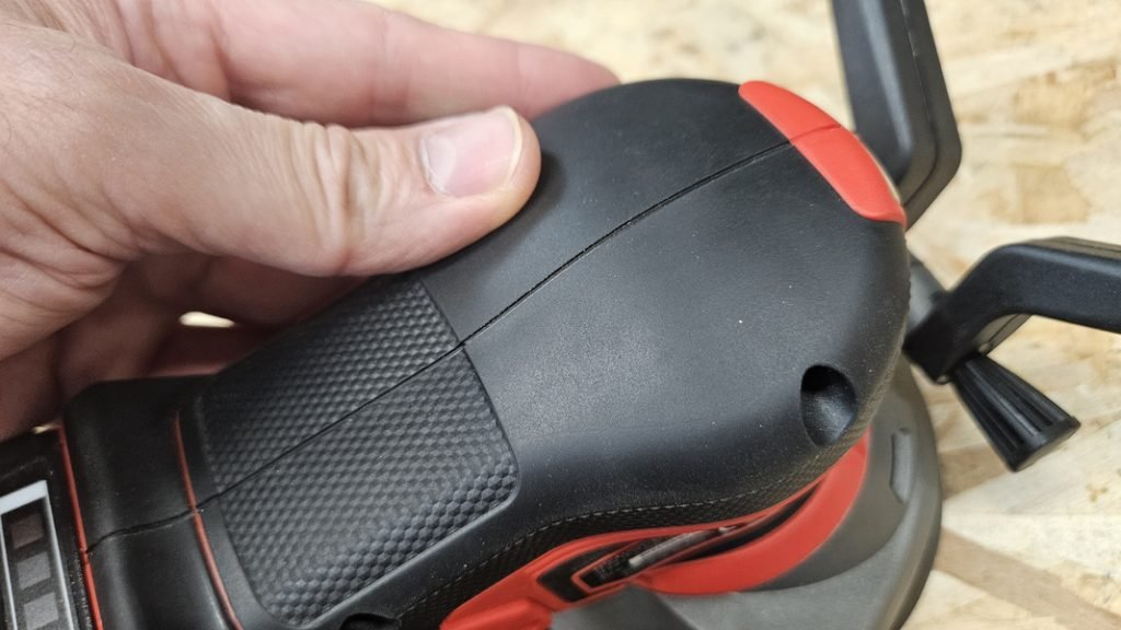 Avec ses 1,22 kg sans batterie, cette ponceuse se manie facilement d’une seule main. Elle est équipée d’un grip agréable et antidérapant, ainsi que d’une poignée secondaire amovible qui améliore le contrôle lors des sessions prolongées. Les commandes sont bien positionnées : l’interrupteur protégé contre la poussière et la molette de vitesse sont facilement accessibles, même en plein travail.
