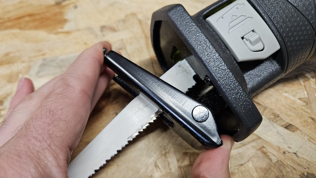 Le changement de lame se fait sans outil, un vrai atout pour gagner du temps. Il suffit d’actionner le levier latéral, d’insérer la lame et de rabattre le verrouillage pour la bloquer. L’opération est simple, rapide et sécurisée. La machine est compatible avec les lames bi-matériaux, capables de couper à la fois le bois et le métal, ce qui la rend polyvalente.