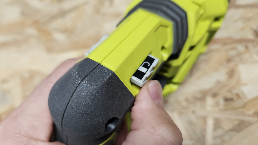 Ryobi a aussi intégré un bouton de sécurité pour éviter tout déclenchement accidentel.