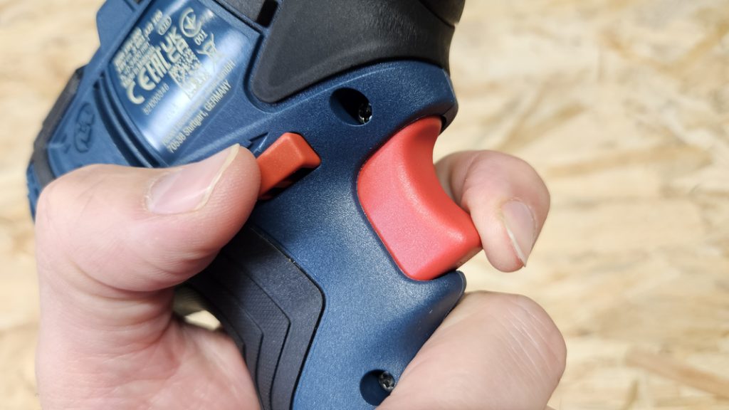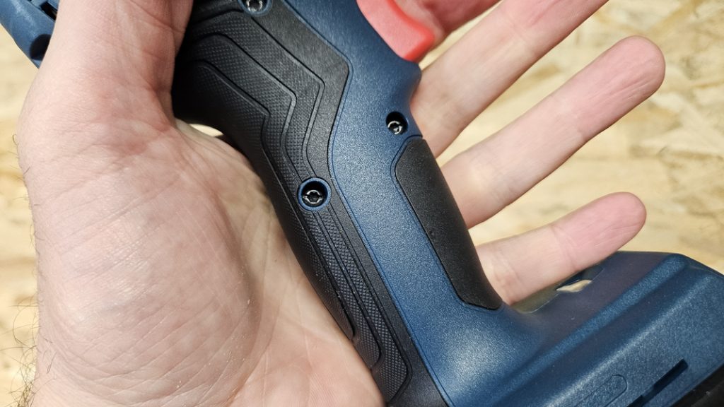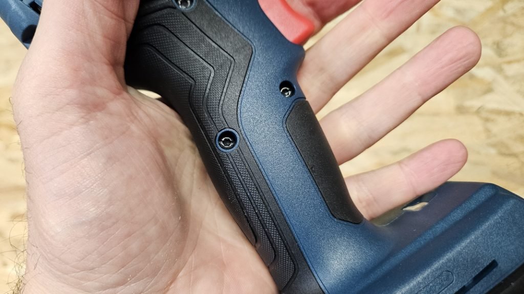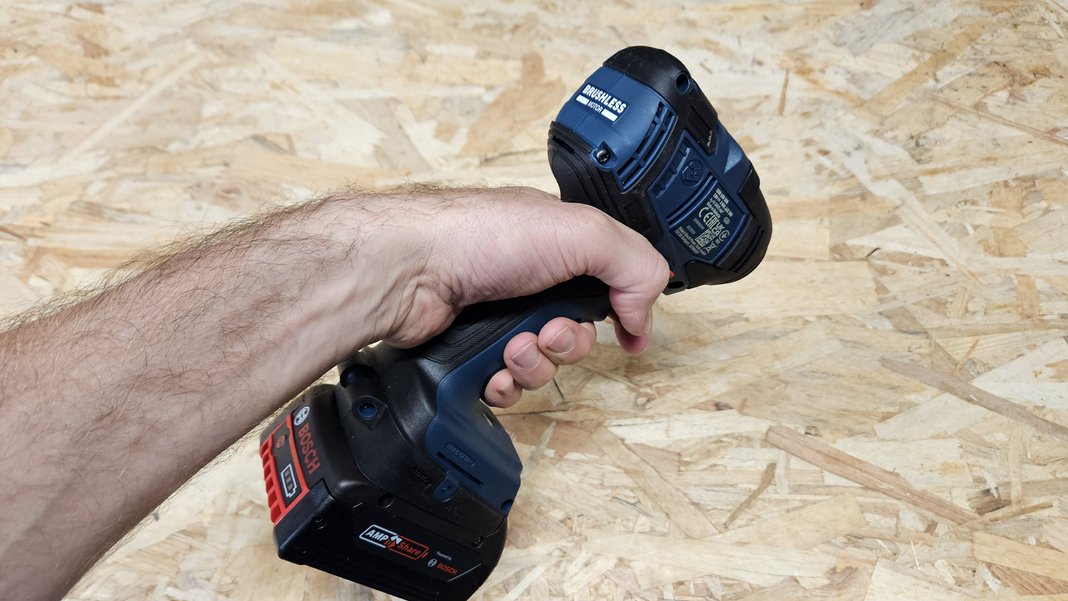 Avec seulement 126 mm de longueur et un poids plume de 1,05 kg (sans batterie), la GDR 18V-200 se manipule sans difficulté. Sa compacité est idéale pour travailler dans les espaces confinés, comme les charpentes ou l’intérieur de meubles. La poignée recouverte de grip offre une excellente accroche, tandis que la gâchette progressive permet un dosage précis de la vitesse. L’inverseur de sens tombe naturellement sous le doigt, et le boîtier dispose en plus de protections en caoutchouc pour amortir d’éventuels chocs.