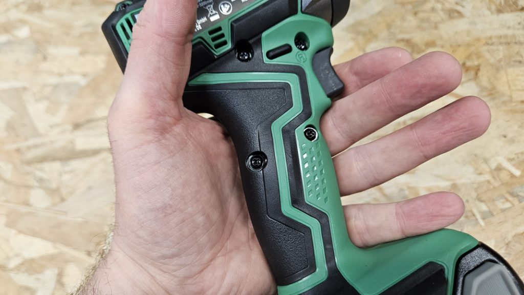 Avec seulement 805g sans batterie, cette visseuse fait partie des plus légères de sa catégorie. Son gabarit compact facilite le travail dans les zones confinées ou en hauteur, tout en réduisant la fatigue lors d’un usage prolongé. Le grip en caoutchouc assure une bonne accroche, et la gâchette ainsi que l’inverseur de sens tombent naturellement sous les doigts.