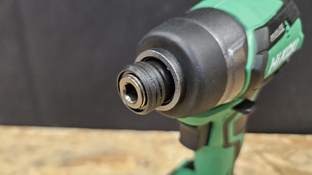 Cet outil est équipé d’un porte-embout hexagonal 1/4″ avec bague de verrouillage. L’insertion est rapide et sécurisée. Bien qu’il n’y ait pas de ressort d’éjection automatique, le retrait de l’embout se fait facilement, même à une main.