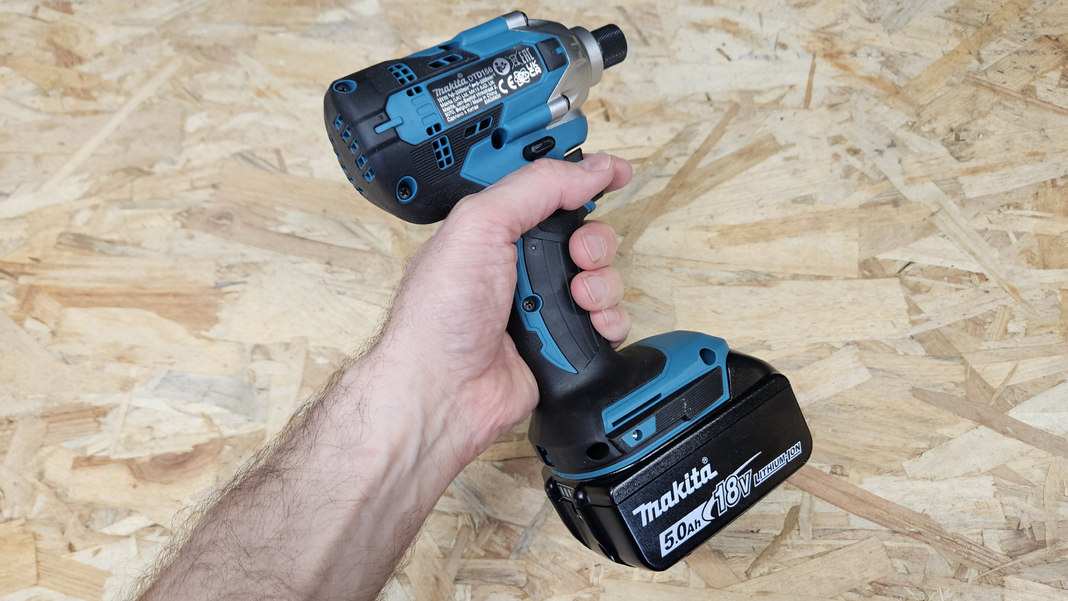 Avec 962 g seulement (hors batterie), cette visseuse à choc reste confortable même pour des vissages prolongés. La poignée est recouverte d’un grip agréable et antidérapant, assurant un maintien ferme. Les commandes sont bien positionnées et réactives et sa longueur de 143 mm en font une machine maniable, capable de travailler même dans les zones exigües. Des renforts en caoutchouc sur la coque protègent l’outil en cas de chute ou d’impact.