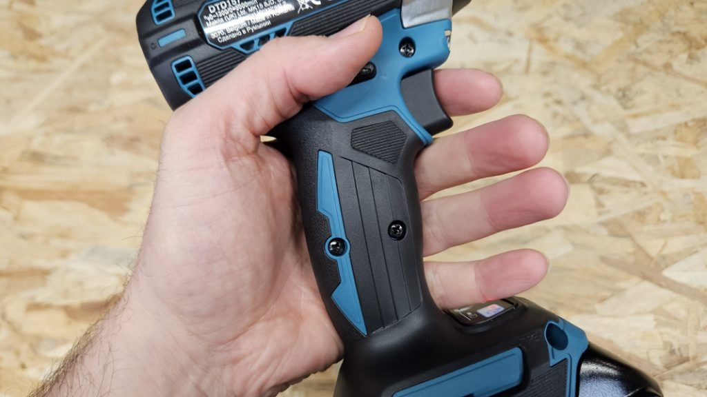 Avec seulement 833 g (sans batterie) et 133 mm de longueur, la DTD157Z se classe parmi les modèles les plus compacts de Makita. La poignée recouverte d’un grip antidérapant assure un bon maintien, et les commandes (gâchette, inverseur de sens) sont parfaitement accessibles. Des renforts en caoutchouc protègent aussi la machine contre les chocs, ce qui prolonge sa durée de vie.