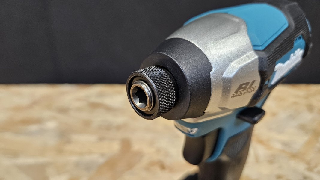 La DTD157Z est équipée d’un porte-embout hexagonal classique de 1/4″. Pour une fixation optimale, je vous recommande d’utiliser des embouts avec encoche. L’insertion et le retrait se font simplement en tirant sur la bague de verrouillage.