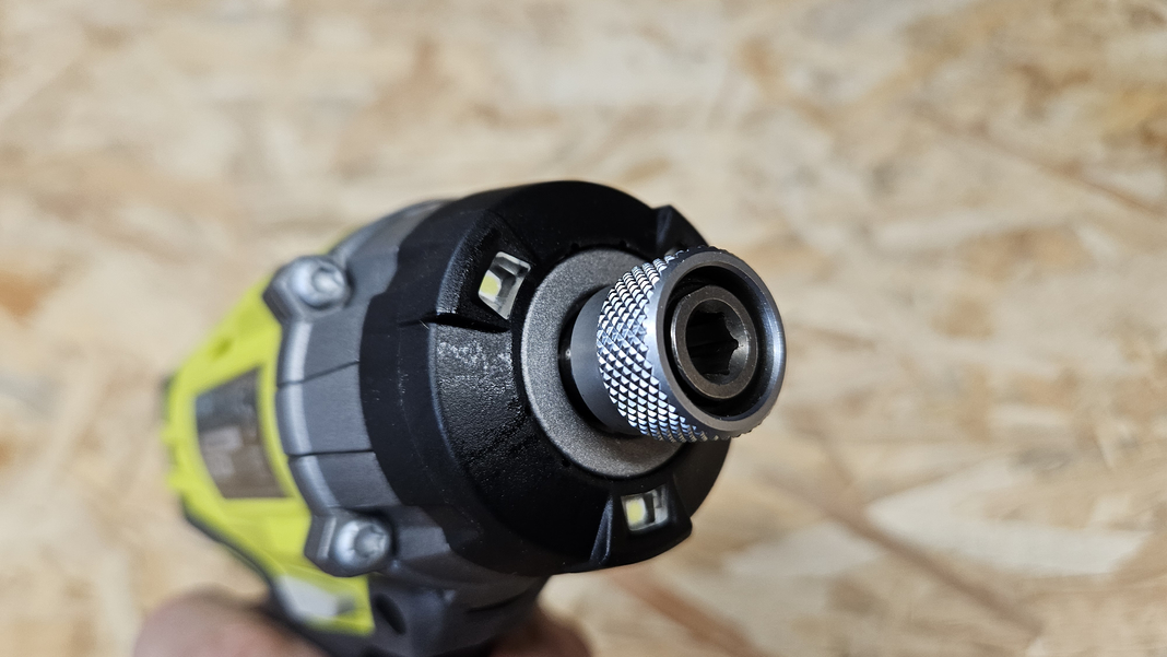 Le système de fixation d’embouts est classique mais efficace : il suffit d’insérer un embout hexagonal avec encoche, qui se clipse automatiquement. Pour le retirer, on tire simplement sur la bague de maintien.