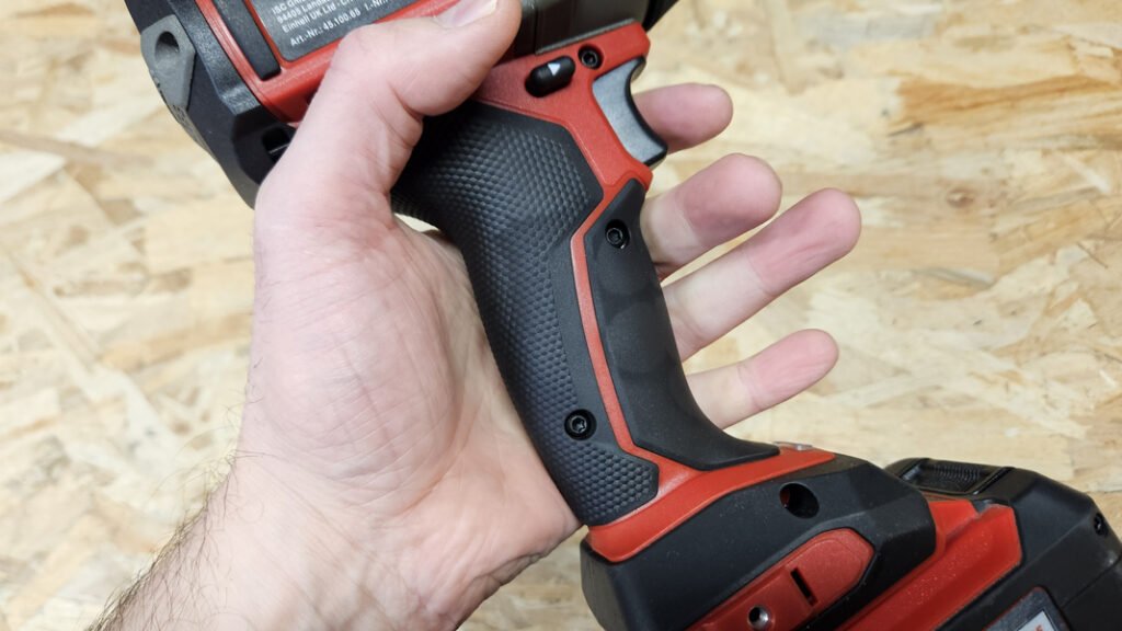Malgré un poids de 1,8 kg sans batterie, la TP-CW 18/750 Li BL reste bien équilibrée. Le grip texturé recouvre la poignée principale offrant ainsi une bonne accroche, même avec des gants. Les commandes tombent naturellement sous les doigts, et le frein moteur est rapide, ce qui offre un meilleur contrôle lors du vissage. L’ensemble inspire confiance, avec une conception robuste et des finitions de qualité. Le bruit reste marqué, typique d’une boulonneuse puissante, mais il est cohérent avec son niveau de performance.